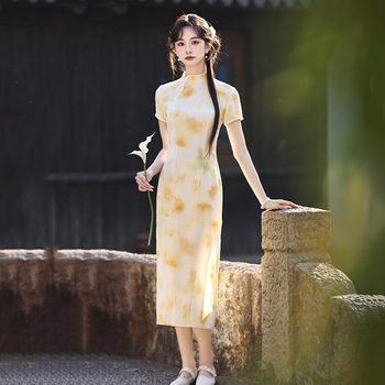 黃色改良旗袍長款融合了復古韻味與現代時尚,以下是一些打造其高級感搭配的密碼:選對款式設計領口設計:可選擇小 V 領設計的