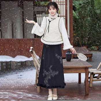 當千年國風與現代日常相遇,便造就了這款兼具韻味與實穿性的新中式兩件套——長袖改良旗袍搭配復古馬甲,既留存了東方美學的典雅