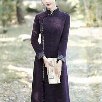 當越南奧黛的靈動線條邂逅中式旗袍的古典底蘊,這款紫色新中式改良旗袍便有了穿越時光的驚豔。甄選雅致紫色系面料,從淺紫的溫婉