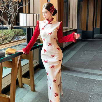 在秋日的時尚舞臺上,復古國風新中式長款長袖改良旗袍堪稱東方女性的優雅戰袍。它將傳統旗袍的韻味與現代時尚元素相結合,展現出