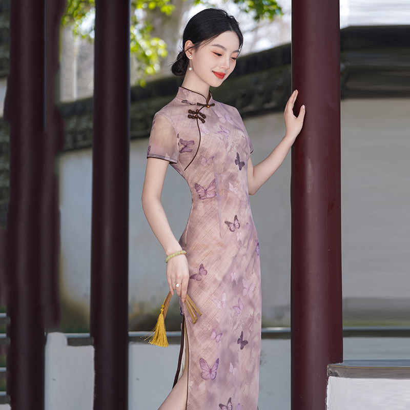 當東方古典的蝶韻與現代剪裁相遇,便有了這款「蝶舞東方」中式長款改良旗袍 —— 它保留了旗袍的雅致風骨,又以短袖設計適配四季,讓復古韻味藏在每一處細節裏,無論是日常出行還是輕社交場合,都能穿出東方女性的溫婉與靈動。