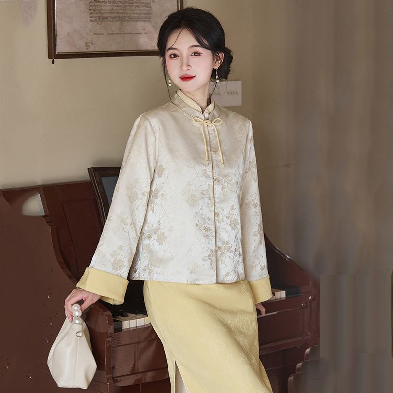 哪怕是日常去咖啡館看書,單穿旗袍配一雙帆布鞋,外搭甲外套,也能穿出慵懶又雅致的感覺。從材質到設計,從色調到版型,這套兩件套都把 “秋日雅致” 詮釋得恰到好處,讓你不用費心搭配,就能輕鬆穿出東方女性的溫柔與風骨。