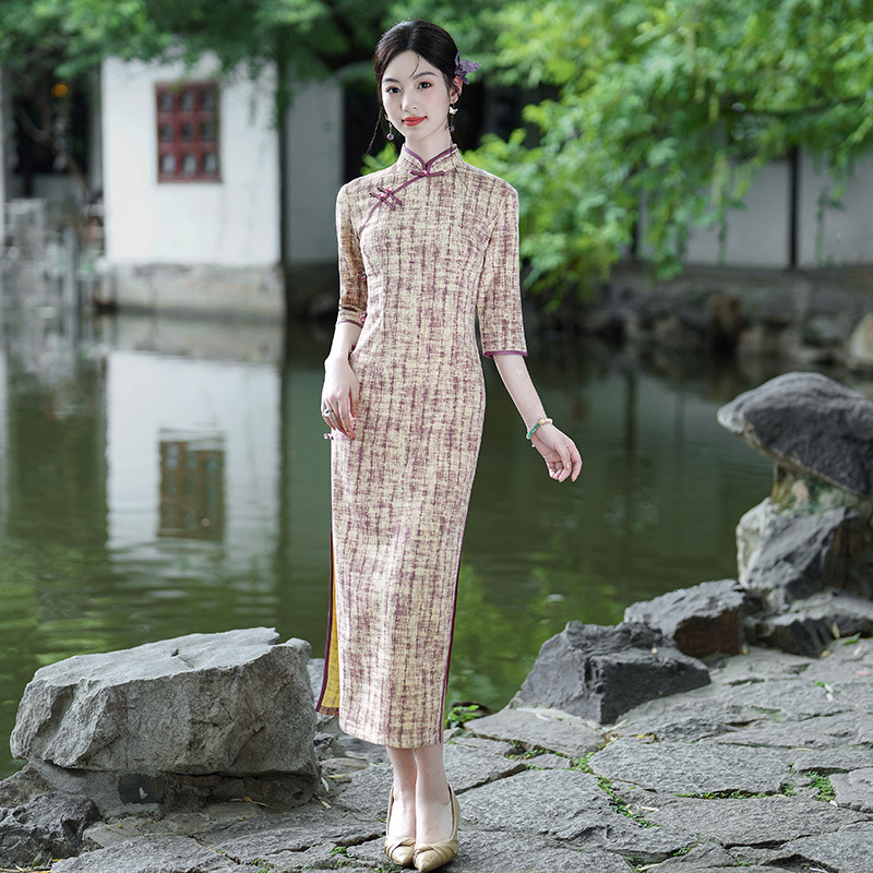當千年國風與現代審美碰撞,便誕生了這款兼具古韻與新潮的條紋格子改良旗袍。它打破傳統旗袍的刻板印象,以條紋的利落與格子的雅致交織,在一針一線間勾勒出東方女性的窈窕身姿,讓古典美在當代生活中煥發全新生機。