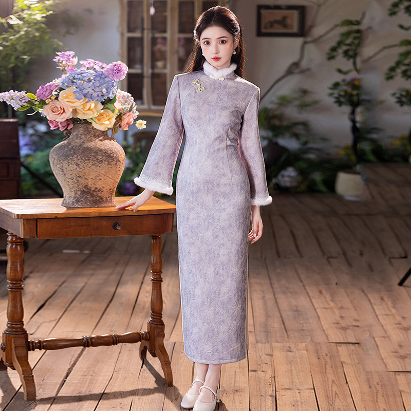 當朔風卷起枯葉,冬日的寒意漸濃,東方女子的雅致穿搭卻從不應被溫度束縛。這款改良版長袖旗袍,以加絨加厚的貼心設計,讓國風韻味與冬日溫暖完美相融,真正實現“一衣入冬,優雅不凍人”。
