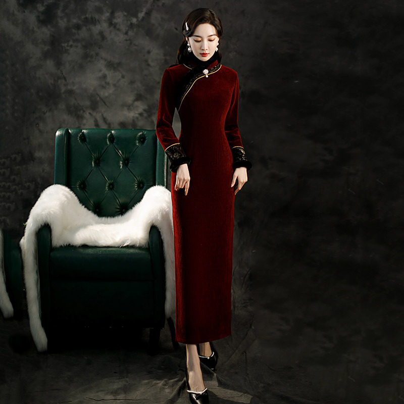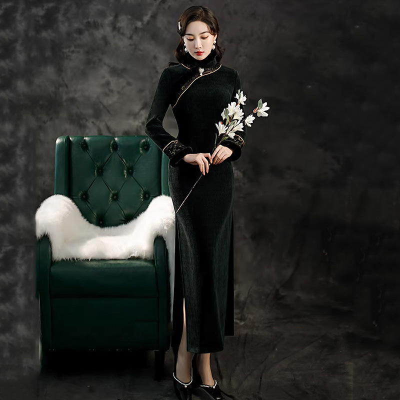 在設計上,它深諳“取舍”之道。保留了傳統旗袍的靈魂——流暢的立領勾勒頸線,恰到好處的收腰貼合身形,隱現東方女性的溫婉曲線,這是刻在基因裏的復古底蘊。卻又跳出傳統形制的束縛,摒棄了繁復盤扣的厚重,改用簡約珍珠扣點綴衣襟,既保留了中式韻味,又增添了輕盈質感;下擺採用微開衩設計,行走間若隱若現的靈動,打破了傳統旗袍的拘謹,更適配日常出行與社交場合。