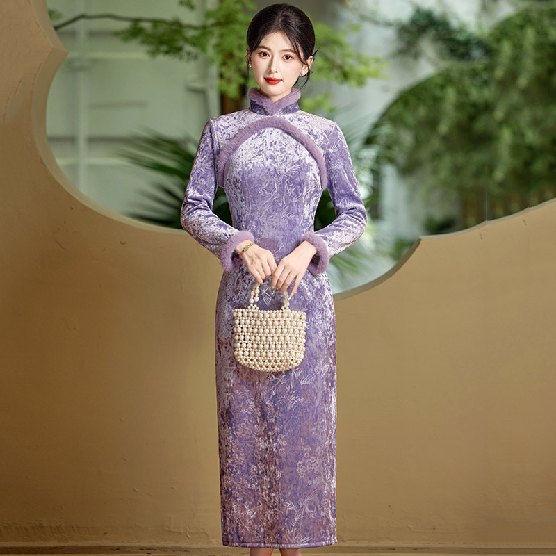 一襲民國風長款旗袍,是時光沉澱的東方雅致,亦是刻入骨髓的復古情懷。當傳統剪裁邂逅溫潤質感,每一寸肌理都在訴說着不褪色的高級韻味。