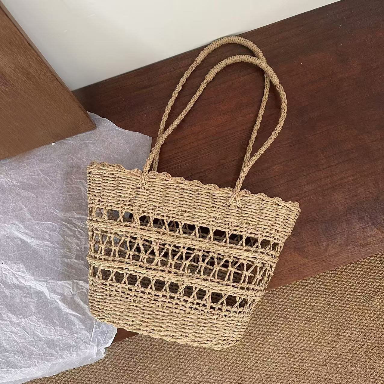 最妙的是那處鏤空設計,藏着設計師的巧思:可能是幾何線條勾勒出的透氣網格,讓包身更顯輕盈;也可能是藤蔓般纏繞的花紋,添了幾分自然野趣。鏤空不僅是視覺上的留白,更讓草編的呼吸感加倍,背着它走在陽光下,連風都帶着幾分清爽。