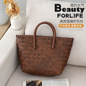 在日常穿搭中,一款 “能打又百搭” 的包包,是提升造型質感的關鍵 —— 這款森系復古單肩水桶包,以編織材質爲基底,融合簡