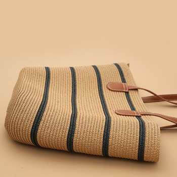 草編的肌理帶着陽光曬過的溫軟,粗糲卻細膩的紋路裏,藏着田園午後的慵懶 —— 這只條紋編織單肩包,光是看着,就像把一片麥田