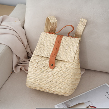 當行李箱滾過沙灘民宿的石板路,目光總會被玄關處那只復古草編手拎包吸引 —— 淺棕色的天然草繩編織出細密紋路,拎手處纏着米