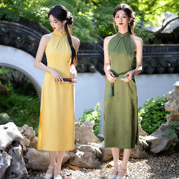 提起國風旗袍,人們總會想起傳統的盤扣、斜襟與及踝裙擺,而這款 “修身復古無袖掛脖國風旗袍”,卻在保留東方古典魂的同時,用