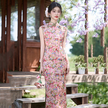 當復古國風遇上少女感,便碰撞出了 “無袖長款改良旗袍” 的獨特魅力 —— 它既保留了傳統旗袍的雅致風骨,又以無袖設計、長