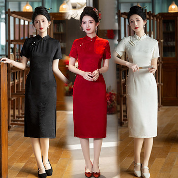 秋風剛起時,衣櫃裏總少一件能兼顧溫度與美感的衣裳 —— 直到看見那件復古短袖長款新中式旗袍,才懂什麼是 “一眼心動”。它